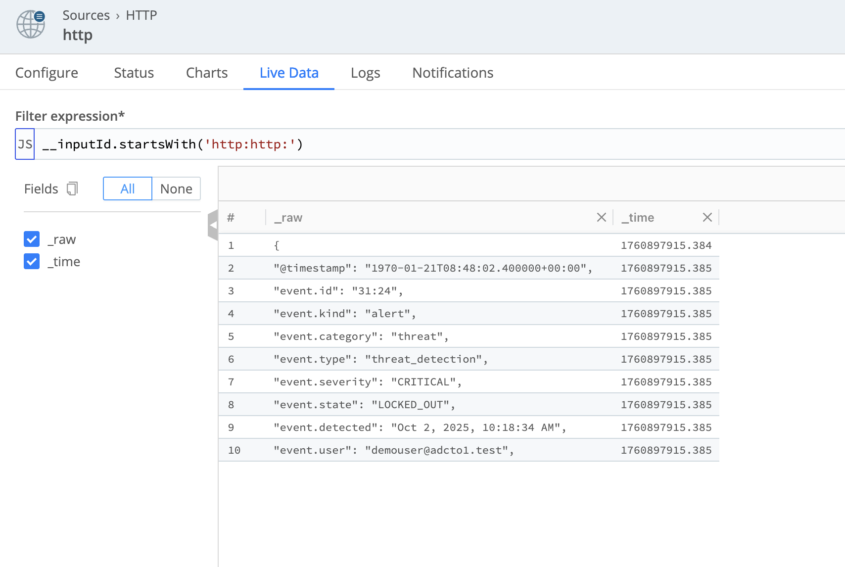 - Create a test event in Defender to validate the alerts appear as indexed parsed events in Cribl