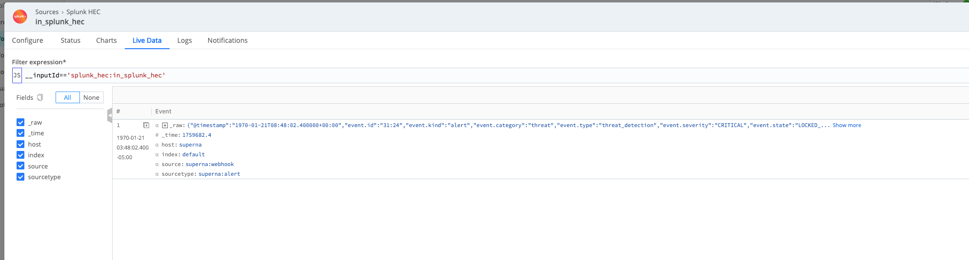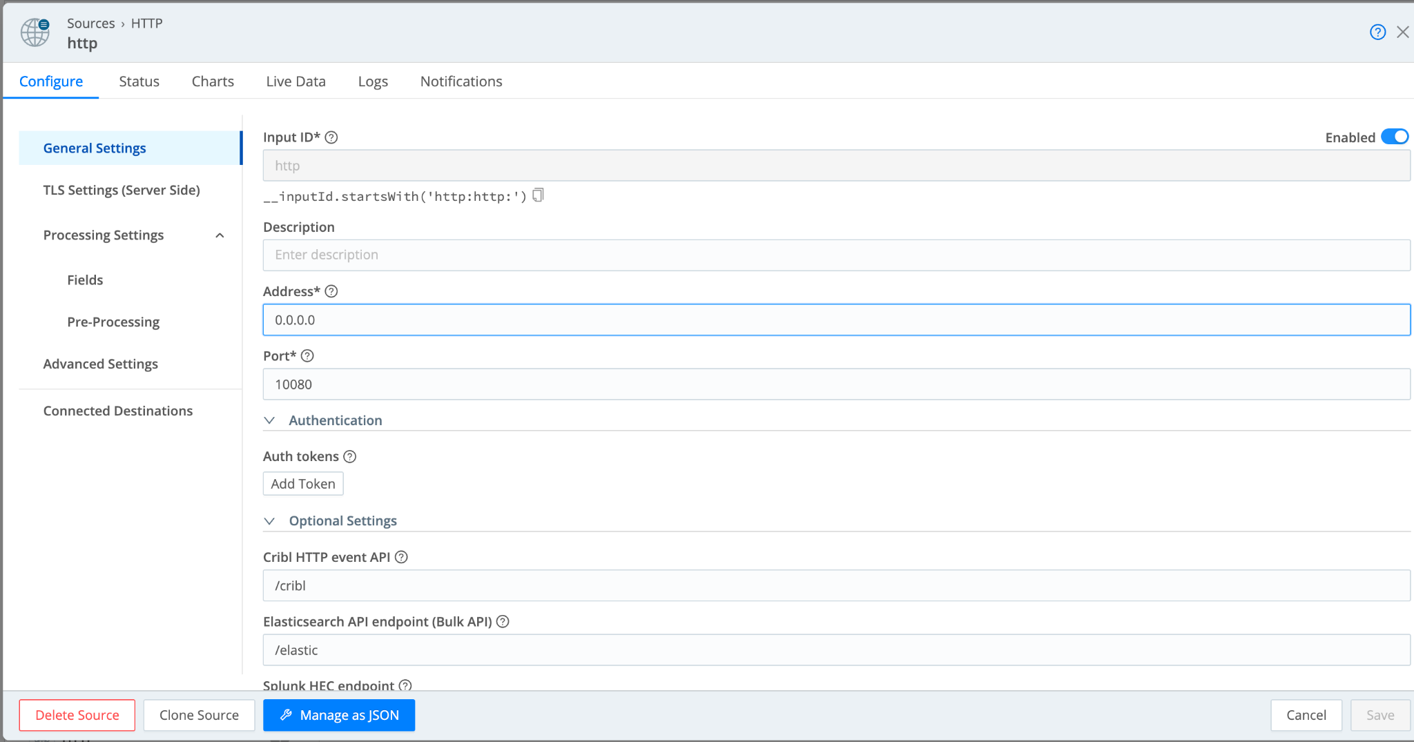 Superna Data Security Edition Zero Trust API is the cornerstone technology used to integrate with SIEM and SOAR platforms. This integration offers alerts mapped to ECS format (Elastic Cloud Schema) or HEC format and sent to Cribl HTTPS json endpoint stream.