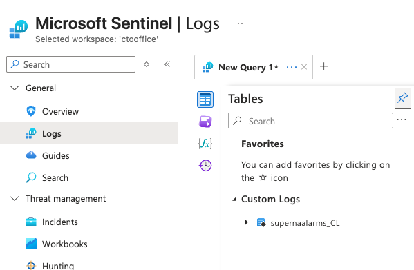 - If you successfully sent alarm data with the test function the Log table will be created automatically using the name configured in the Logic app.