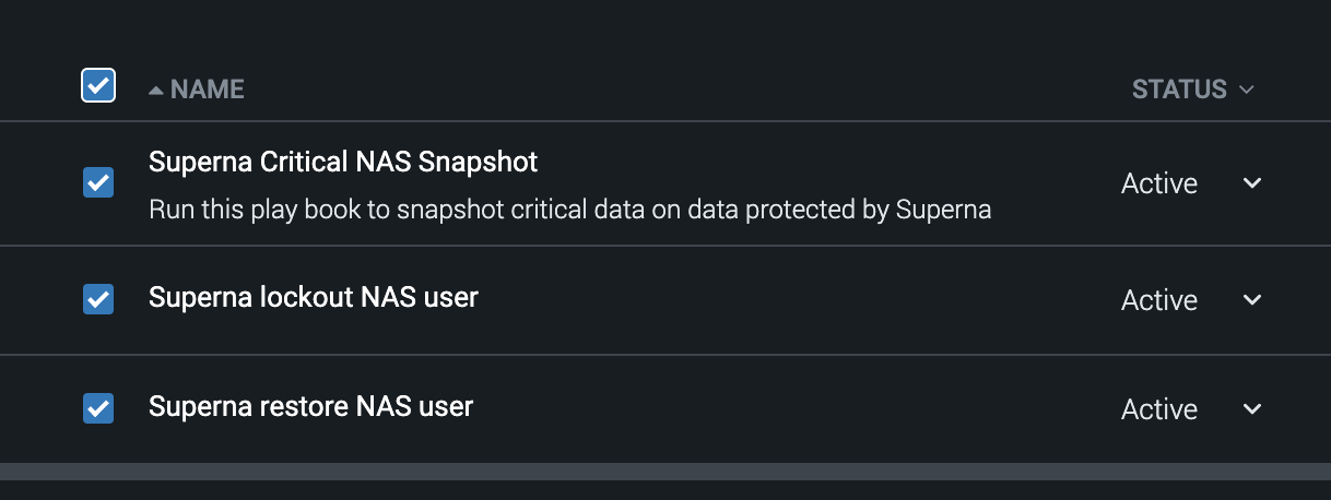 - This playbook does not require any inputs and will create immutable snapshots on critical data if the threat requires defensive actions. This ensures Superna Data Security Edition can recover files from a snapshot if data was attacked.
